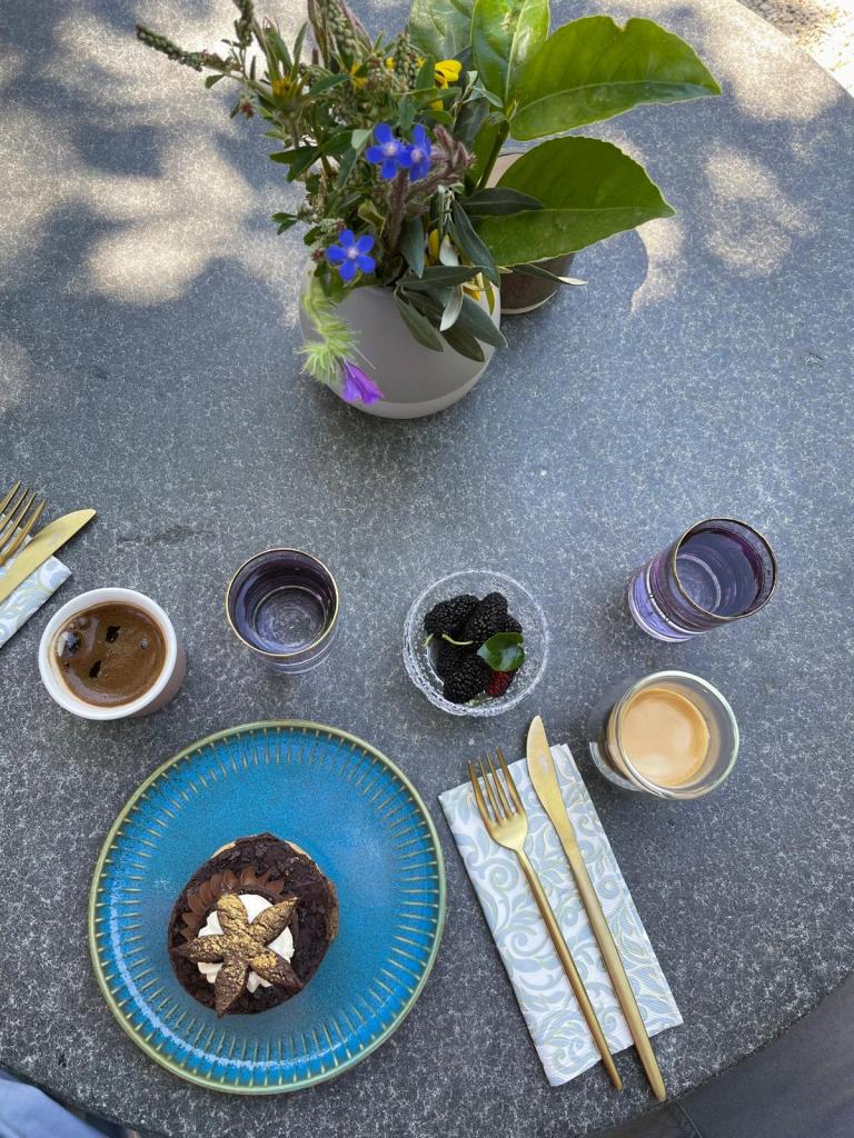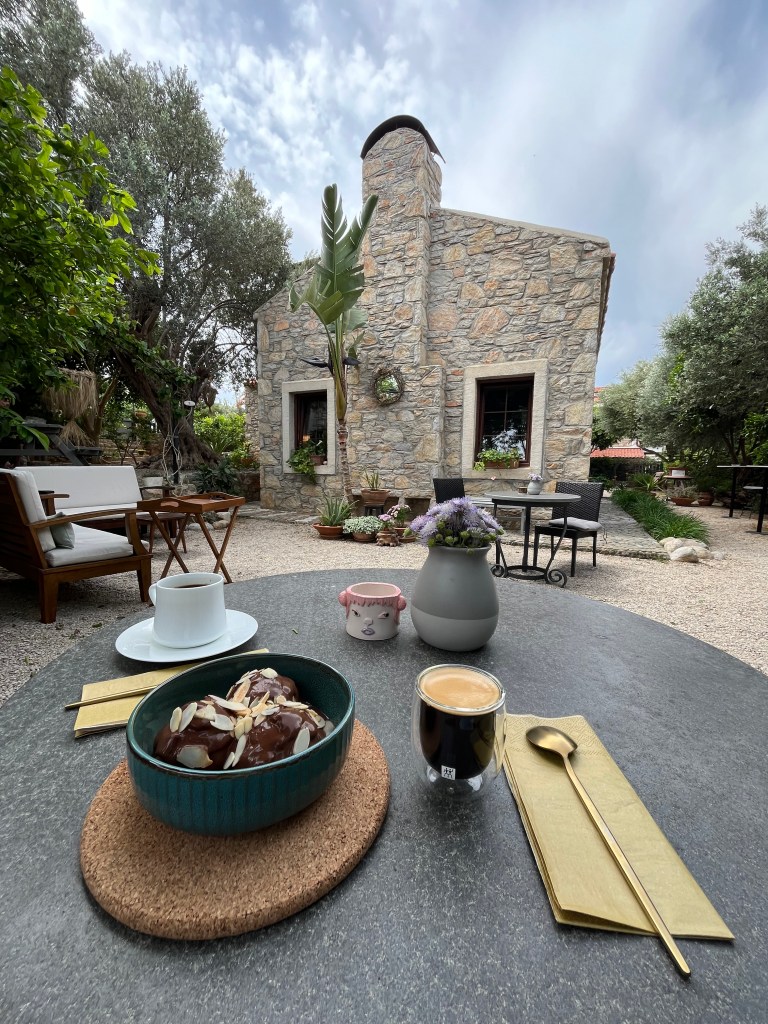 Bahçe kısmına geçtiğinizin zaman limon ağacının altında , oturma alanında veyahut ahşap bir bank üzerinde dinlenebilirsiniz. Önemle hatırlatmak isteriz ki limonları koparmayalım! Tatlınızı kahveniz eşliğinde yiyebiliyorsunuz. İçecek menüsü sınırlı olarak görünse de huzurlu bir atmosfer için gayet yeterli olduğunu söyleyebiliriz. Günlük olarak hazırlanan hafif alkollü yaz içecekleri de ikram olarak gelmektedir.