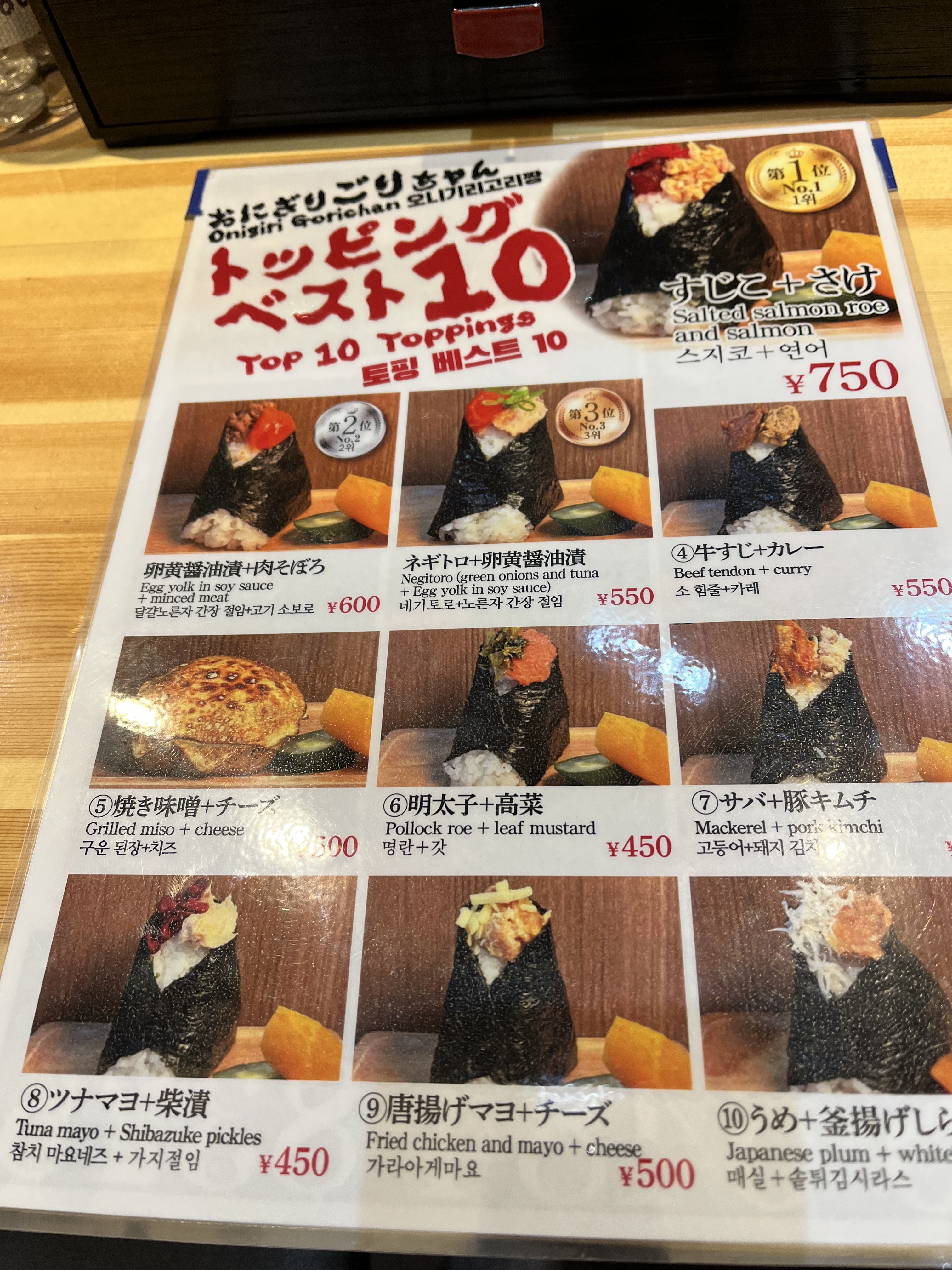 Osaka’ya geleneksel olarak “‘Milletin Mutfağı’” 天下の台所, tenka no daidokoro veya Japonya’nın gurme yiyecekler başkenti gözüyle bakılır. Aşağıda resimde yer alan Onigiri restoranı pirinç topları içinde ve üzerinde farklı balık türleri ile harmanlanmış doyurucu bir öğündü. Olong Tea ise sindirim sistemi için yararlı bir çaydır.