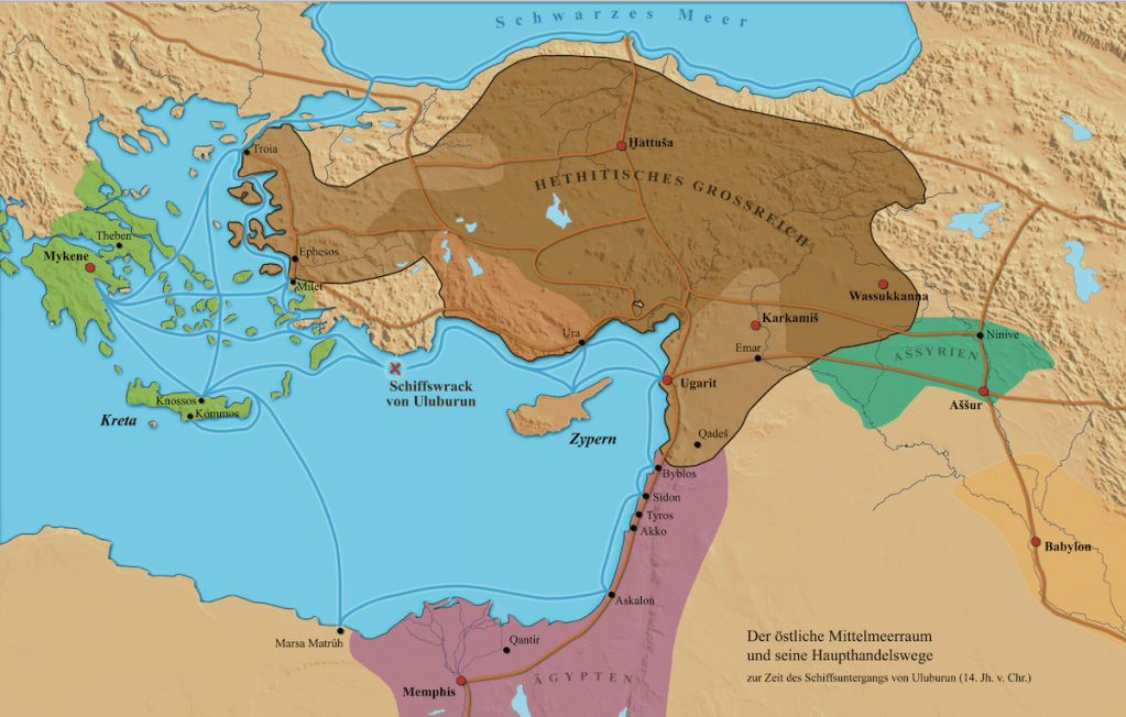 Yaklaşık 4000 yıl önce, MÖ 20. yüzyılın başında Kuzey Mezopotamya’daki Asur’dan gelen tüccarlar, tüm Orta Anadolu’yu içine alacak şekilde kırka yakın ticari yerleşim ağı kurdu. Ağın merkezinde Kaneş (Kültepe) , Hattuşa da ikinci derece ticaret istasyonlarından biriydi. Askeri ihtilaflar nedeniyle MÖ 1720 yılından itibaren Kaneş’deki yerleşim sona erdi. Aşağıdaki resimde kahverengi kısımda Hititlerin ulaştıkları toprakları görebilirsiniz. Sağ alt köşede yer alan sarı renkli Babylon’da (Babil) kısa bir dönem de hüküm sürmüşlerdir.